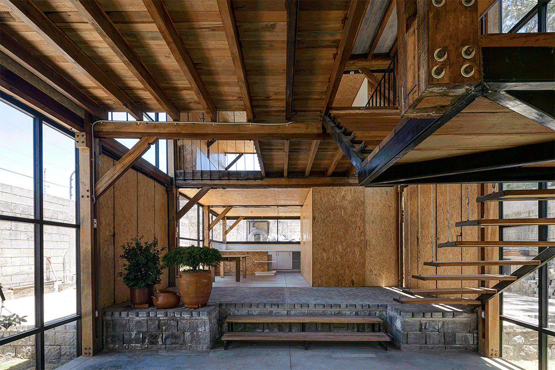 El programa arquitectónico prioriza áreas comunales; los espacios privados se reducen a un cuarto máster. El resto del proyecto es un gran espacio de estar donde no existen barreras; en segunda planta, un área abierta pasa de ser una sala de reunión a un cuarto privado a través de una puerta plegable y algunos cojines al piso. Las dos plantas del proyecto se unen a través dos dobles alturas en la franja de jardín interior; sobre uno de los huecos, cuelga una malla a manera de hamaca.
