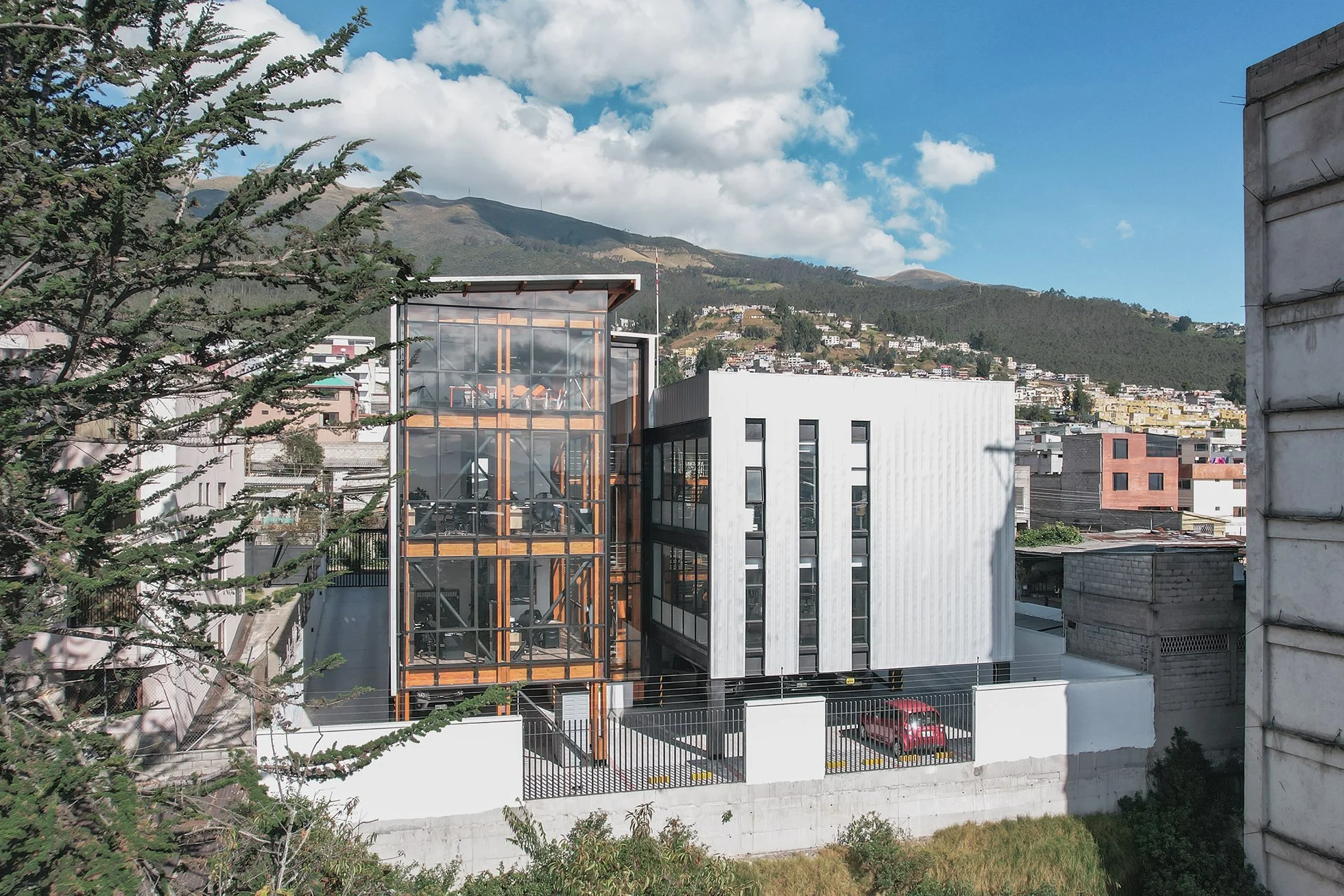 CENTROCESAL es una empresa de análisis de laboratorio que, tras un crecimiento paulatino durante quince años de trayectoria, necesita de nuevas instalaciones apropiadas para el volumen de empleados y trabajo. La nueva construcción se desarrolla en un terreno en la sección occidental de la ciudad, a 3000 msnm con una vista amplia al norte de Quito. Tiene un área de 715m2 con una pendiente constante que baja alrededor de cinco metros hasta el límite inferior que conserva la vista.